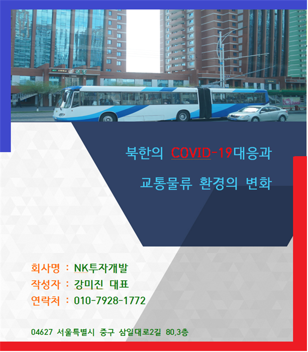 북한의 COVID-19대응과 교통물류 환경의 변화 (주)NK투자개발 대표 강미진 들어가는 말 COVID-19의 발생은 대북제재로 홍역을 앓고 있는 북한의 경제를 또 한 번 옥죄는 치명적 사건으로 기록되고 있지만 현재 COVID-19확산의 피해에서는 다소 안정지역으로 인식되고 있다. 본 기고문에서는 2020년부터 2021년 6월까지의 북한...