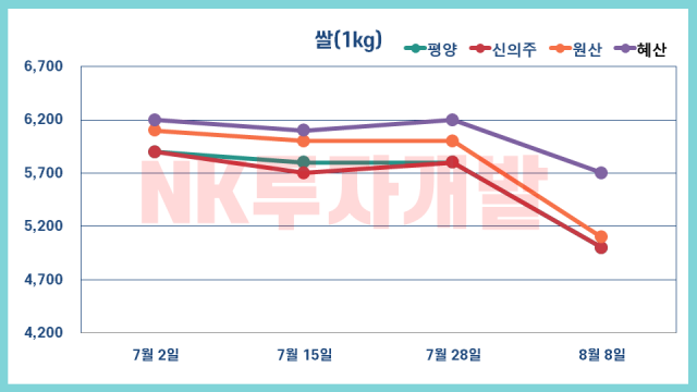 북한 시장 가격 8월 8일