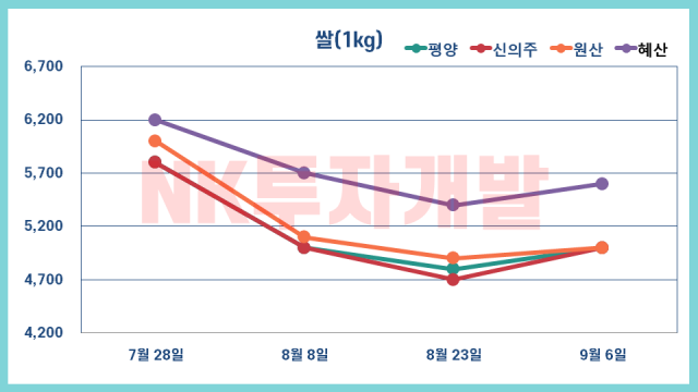 북한 시장 가격 9월 6일